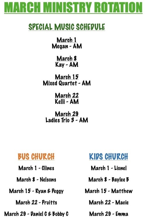 • Monthly Ministry Rotations